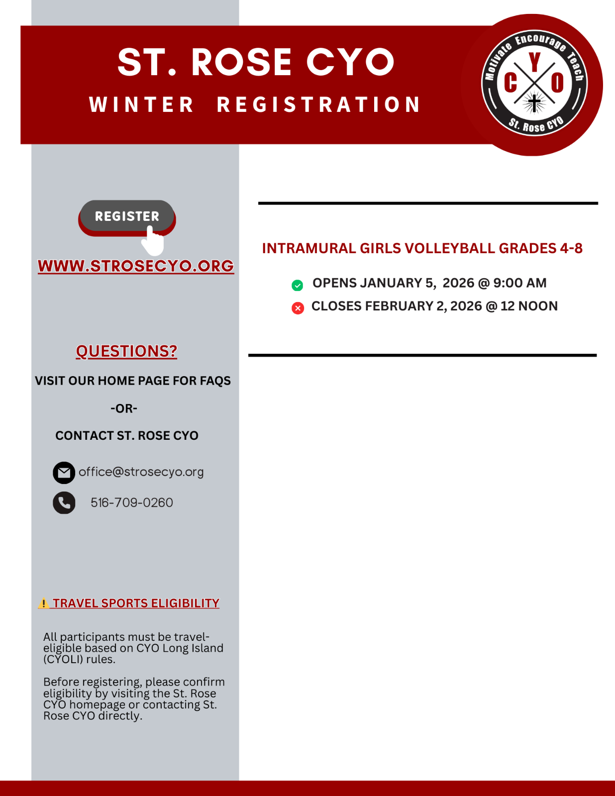TRAVEL GIRL'S VOLLEYBALL (GRADES 5-12) TRYOUT DATES & IMPORTANT INFORMATION